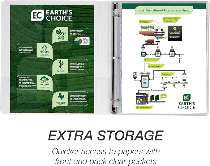 - Sustainable Solution: Our durable 3 ring binders are made from plant-basedcover material derived from 25% Brazilian sugarcane and FSC Certified 100% recycled fiber boards. Our planet-friendly binders are ideal for safe and green organization for your home, office, or classroom.