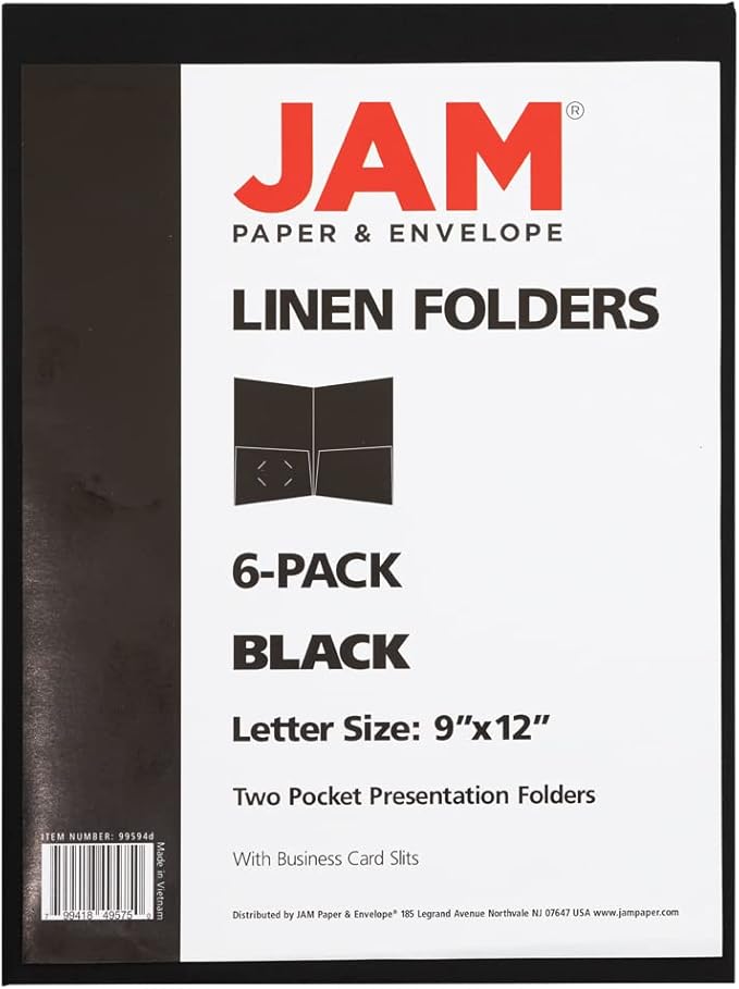 JAM PAPER Two Pocket Textured Linen Presentation Folders - Letter Size Business Folder - Black - Bulk 100/Box