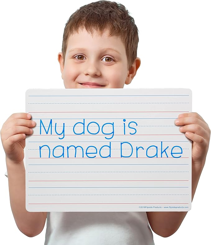 Flipside - 12034 Red and Blue Ruled Plain Dry Erase Board, 9 x 12 Inches, White, Pack of 24