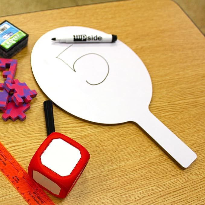 - HANDHELD WHITEBOARDS – Oval dry erase paddles offer a convenient way to facilitate quick responses and active participation.