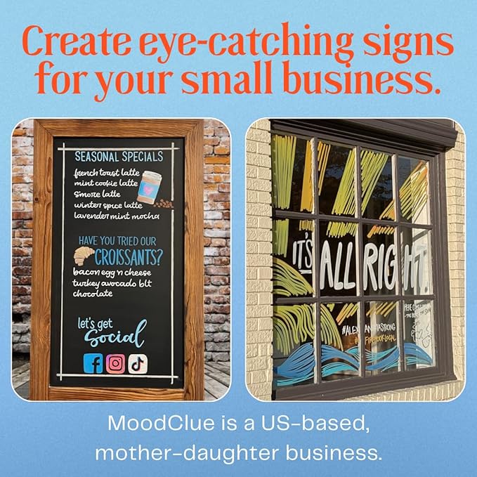 - 💥 AMAZING VERSATILITY - Reversible 6mm tips give you the option of a fine tip or a thicker, bolder line. MoodClue liquid chalk looks great on everything from an bistro board to a car window.