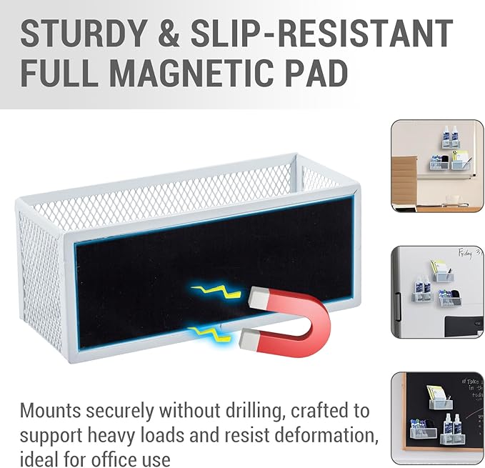 - Set of 3 white mesh baskets with magnetic back panel for your office or school classroom clutter-free