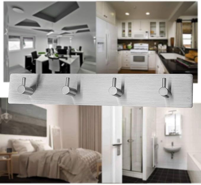 Self Adhesive Stainless Steel Hooks, Wall Mounted Heavy Duty Hanger, Key Rack Towel Hooks for Bathroom, Living Room, Kitchen (4 Hooks)