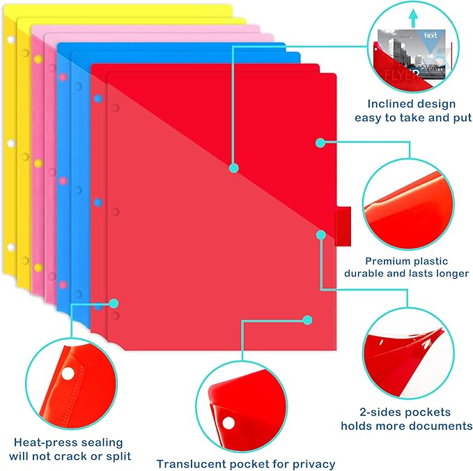 - Frequent Reference: MAKHISTORY pocket dividers are made of ultra-durable and tear-resistant plastic, worry-free for repeated and frequent reference. What’s more, the colorful transparent pockets features with semi-clarity, easy for looking up your various files
