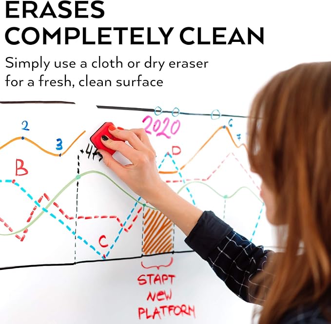 - These quick-drying erasable markers lay down washable ink that erases quickly and completely with any cloth or dry eraser. These pens feature designed chisel tips allowing you to write with any part of the durable tip’s surface to produce thin or thick lines which are easily seen across a classroom or conference room