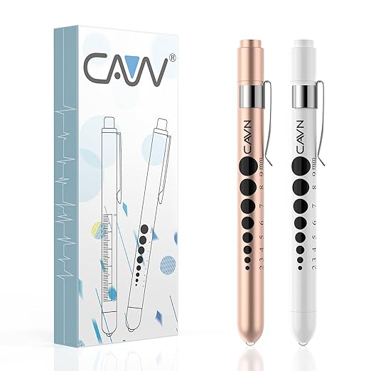 CAVN Pen Light with Pupil Gauge LED Penlight for Nurses Doctors, 2 Pcs Reusable Medical Penlight for Nursing Students (Rose Gold/White)