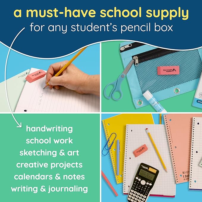 - Never worry about smudging on your paper when you use our smudge-proof, premium quality pink erasers, which are a must-have for any student’s school supplies pack