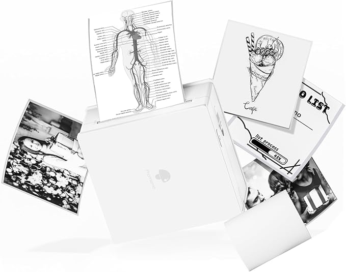 - Mini Mobile Printer with Powerful APP- one-click printing, saving time and effort, phomemo M02 note printer can print photos and text instantly, phomemo app offers variety of fonts, filter effects and themes, makes your black and white image more HD.