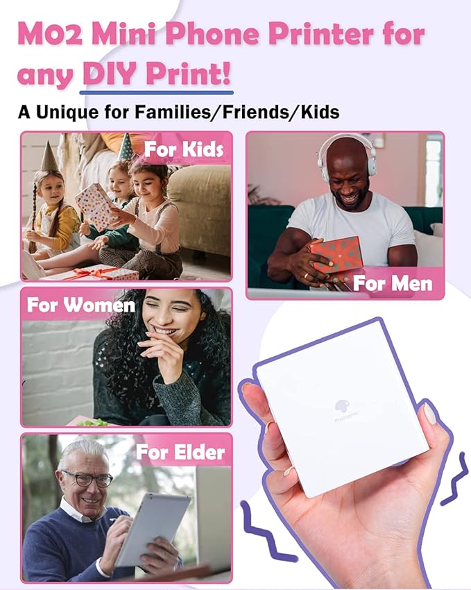 - Multipurpose- Phomemo M02 portable mobile printer is better for company business, work plan, office assistant, memo, meeting notes, study notes, shopping list, receipts. Suitable for office, students, amateur archivists, treasure moms etc