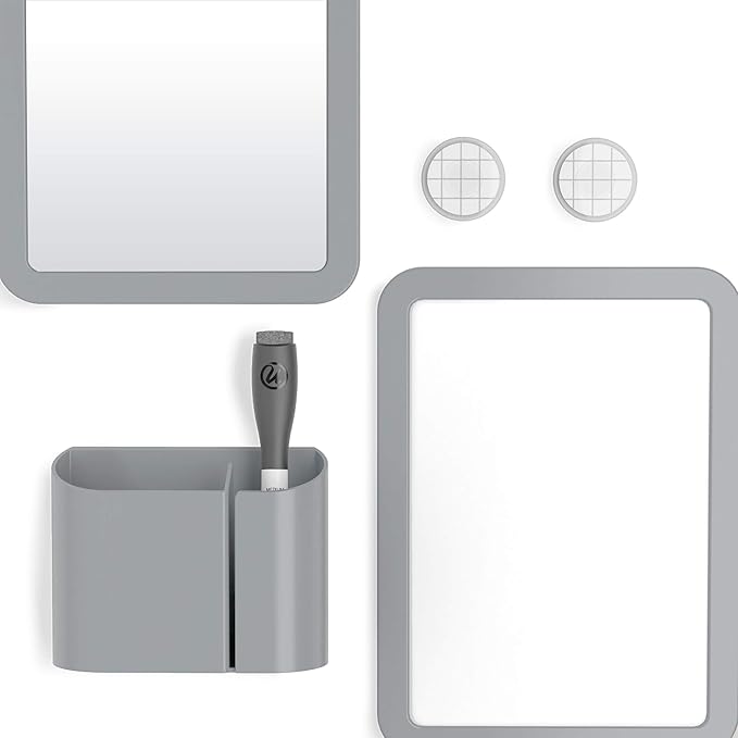 U Brands Locker Accessories Kit, Back to School Essentials, Grey, 6-Piece, Includes Whiteboard, Mirror and Organizing Supplies