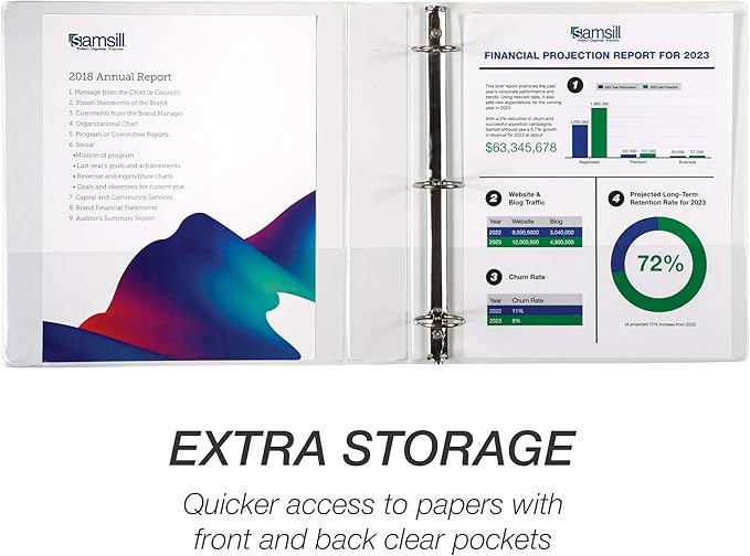 - Easy Customization: One and a half inch binder features a clear overlay with a non-glare finish; our 3 ring binders allow for complete customization – perfect for organization and presentations; 2 clear pockets for additional paper storage