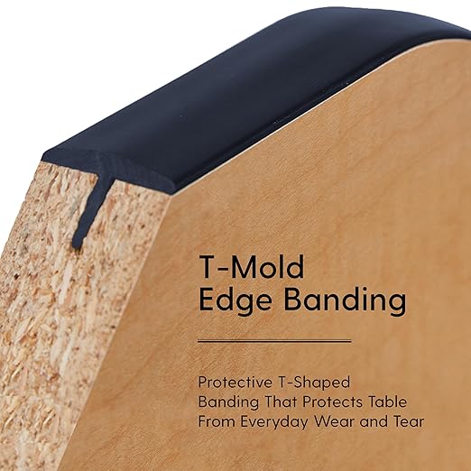 - T-MOLDING EDGE: sturdy plastic edge banding around table top helps protect from everyday wear and tear