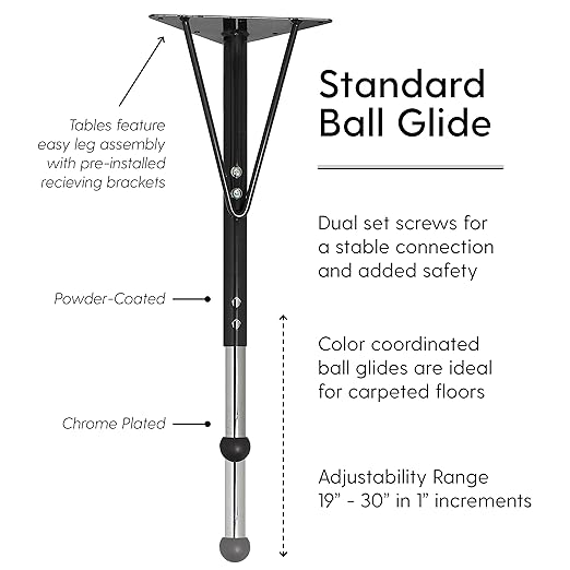 - ADJUSTABLE HEIGHT: standard table legs adjust in 1" increments for table top heights from 19" to 30" to accommodate children, teens, and adults