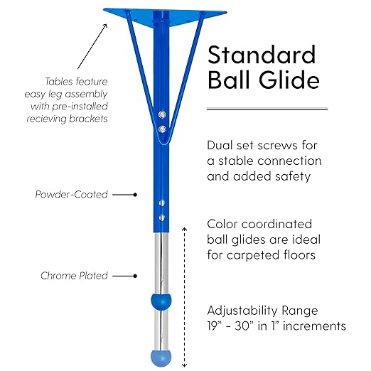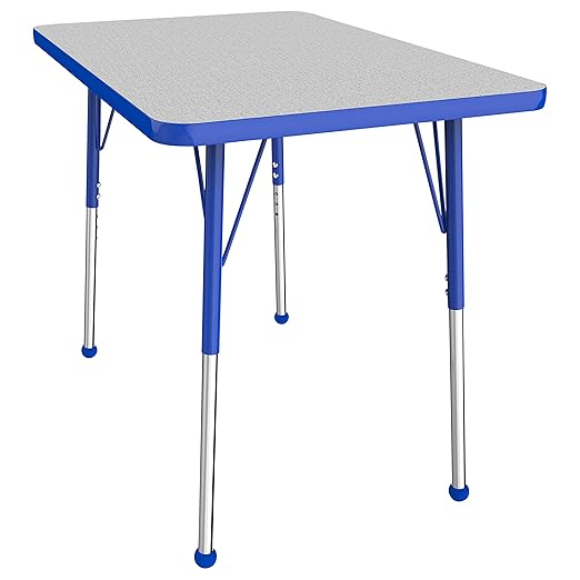 Factory Direct Partners FDP Rectangle Activity School and Office Table (24 x 36 inch), Standard Legs with Ball Glides, Adjustable Height 19-30 inches - Gray Top and Blue Edge