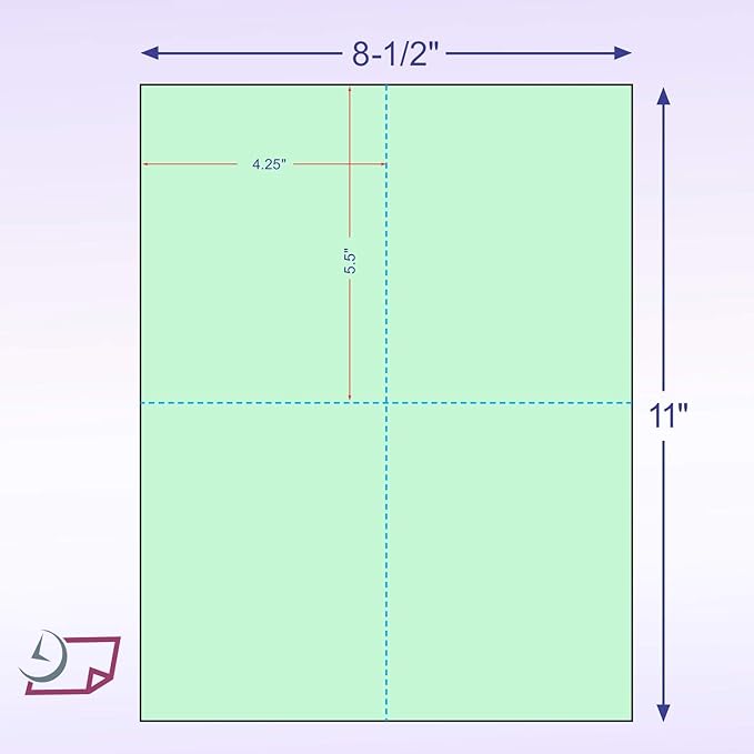NextDayLabels 8-1/2" x 11" Laser/Inkjet Postcards 4 Per Page, (4-1/4" x 5-1/2" Each Card | Green, 4000 Cards)