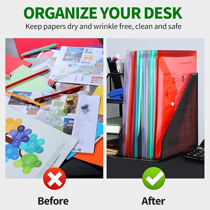 - Versatile Plastic Folders: 12.76” x 9.15” plastic envelopes, can be filled with paper or little things, keep things in order, reduce mess, bring comfortable feeling; well protect against water, scratch, friction, dust, etc., keep things in good condition, away from curling up, damage, smear, loss etc..