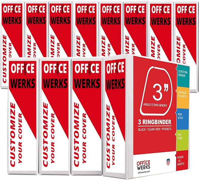 - Premium quality — 3" Angle D-Ring Binder comes with two opaque interior pockets. Strong gap-free binder rings keep your papers securely in place. All 3 sides are customizable for a coordinated look, front, back and spine. Assembled in the USA