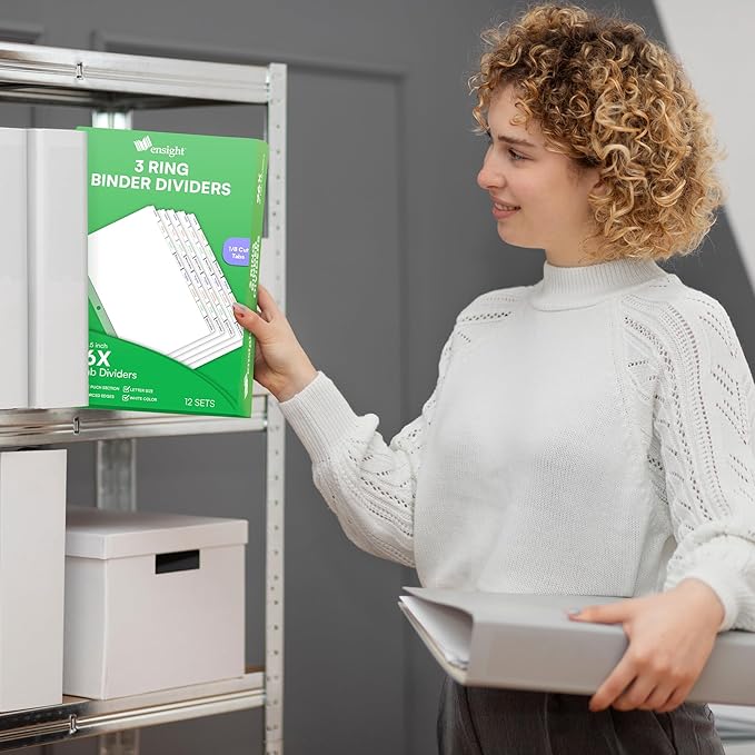 Ensight 3 Ring Page Dividers Bulk, 1/8 Cut Tab Dividers - 96 Per Box Divider Pages with Tabs, Decorative Printable Rewritable Divider Tabs, Exhibit Tab Dividers for 3 Ring Binders Bulk