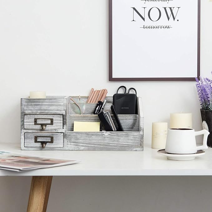 - Rustic Wood Organizer:Distressed Wood Organizer,Rustic and beautiful,Suitable for country style rooms, also suitable for modern style.Can be placed on the table of any table, counter, shelf, dressing table, used to organize daily necessities.Make your life more comfortable and tidy, so you can find the items you want faster when you need them.