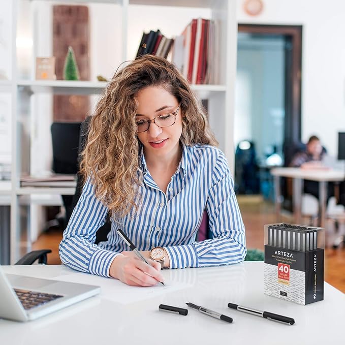 ARTEZA Rollerball Pens, Pack of 40 – Black Ink Fine Point Pens with 0.7 mm Tip for Journaling, Notetaking, Office Work, and Everyday Writing