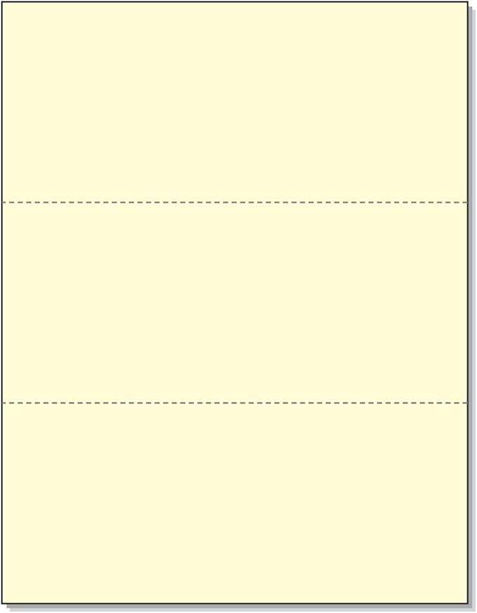 - Ream of 500 Sheets 8-1/2 x 11 (Letter Size) with a Full Horizontal Perforation @ 3-2/3" and 7-1/3"