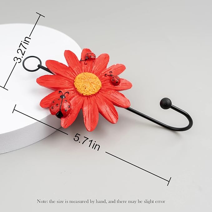 - Pack of 8 flowers,4 different color combinations are simple and not monotonous. The insects on the flowers make the whole look more realistic and natural. The high-quality coating paint perfectly presents the bright flowers of the flowers, and keeps the hooks from rusting and has a long color retention time.
