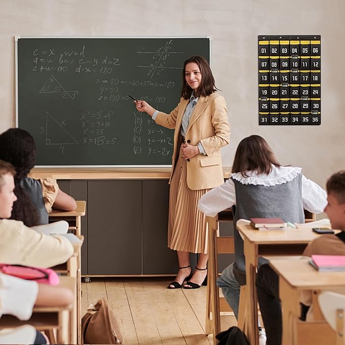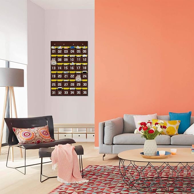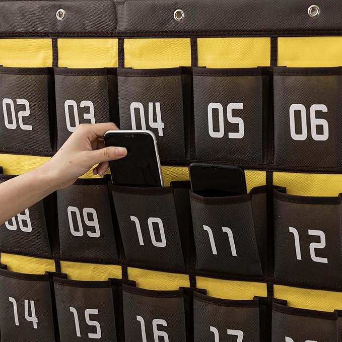 HBlife 36 Pockets Numbered Classroom Organizer Pocket Chart Cell Phones Holder Wall Door Hanging Storage Bag (Brown, 2 Pack)