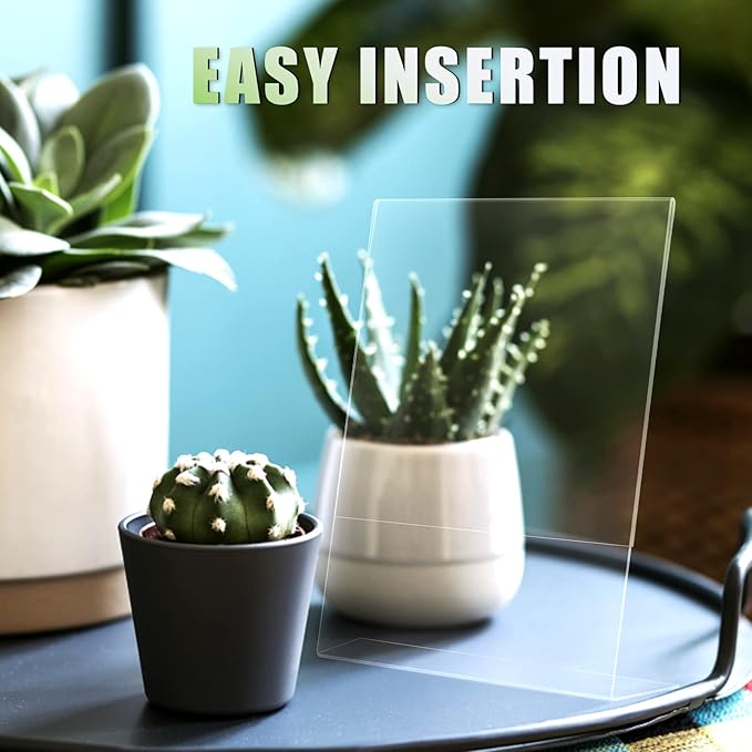 - 【Self-standing Design】This acrylic display stand can stand firmly on the table. The oblique back design conforms to the best visual effect in terms of ergonomics and is the best partner for displaying photos and ads. Paper can be easily replaced.