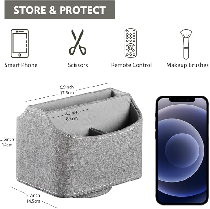 - 【Perfect Size】- Unique design, measuring 6.9x5.7x5.5 inches, this remote basket keeper is compact and takes up very little desk space. Suitable for any countertop, desktop or tabletop such as nightstand, bedside table, coffee table, side table, end table, sofa, couch, recliner, vanity and dresser;