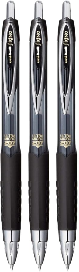 - THIS BUNDLE INCLUDES: These Signo pens are everyone's favorite! The pack includes 3 black, Signo 207 pens, all of them in 0.38mm point. These are original and authentic pens. In order to keep them neat and organized, you will be receiving a free plastic pouch for easy storage and great durability by Advantage Gifts. We especially combined the right colors to create this bundle. Be sure to check out our other great pen pouches and mixes.