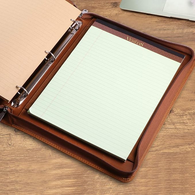- GENEROUS PAPERWORK STORAGE–This leather padfolio for men designed for the standard US letter-sized 11”x 8 1/2” sheets, The 1-inch 3 ring binder could hold almost 80 sheets of Letter size Loose-Leaf Refills.
