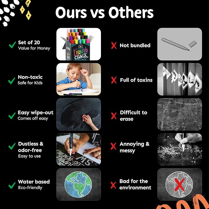 - Fun and Easy to Use- Time to replace the old dusty chalk with bold neon color chalk markers