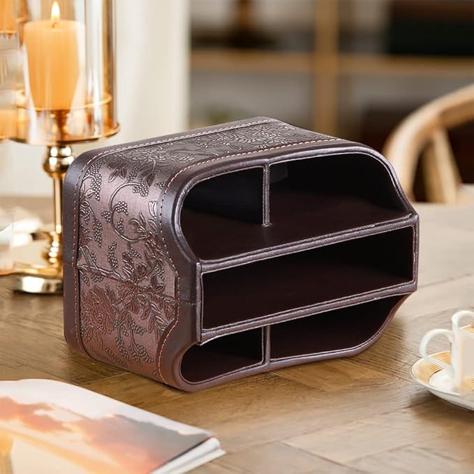 - DESKTOP ACCESSORIES DECOR :5 compartments, perfect solution to storage various remote controllers for cable box, TV accessories,roku streaming stick, Apple TV, Amazon Fire TV, soundbars.etc.also a good storage box for office supplies stationery ,such as pens,scissors ,phone etc;