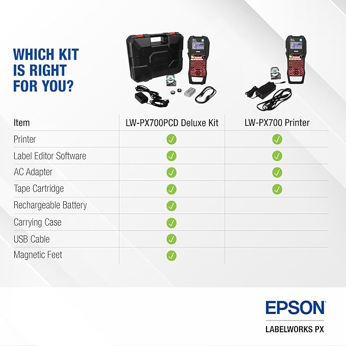 LABELWORKS Epson LW-PX700PCD Industrial Label Maker Kit - Complete Kit with Accessories, Compatible with Large Variety of Tape Types, Portable Handheld Label Printer