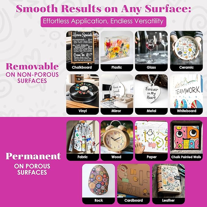 - Works On Many Surfaces: From glass to metal to your car window, these chalk pens deliver sharp results. This liquid chalk marker pack is perfect as window markers for glass projects, making these chalk markers for chalkboard essential school supplies for teachers and fun adventures