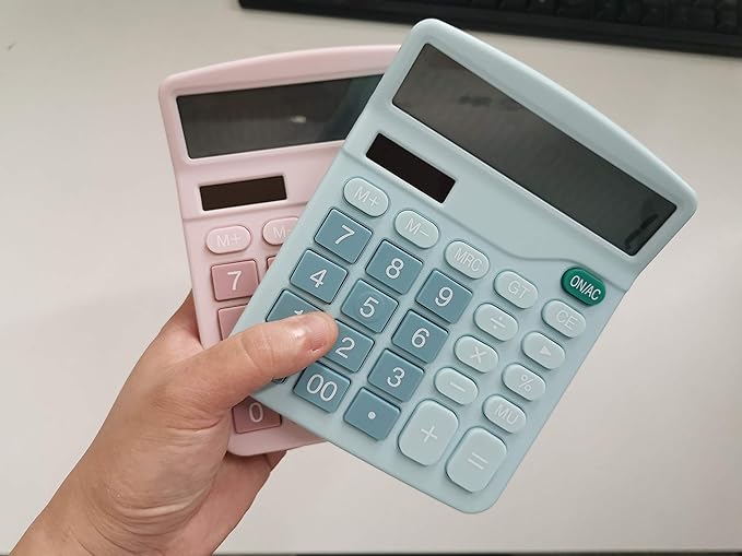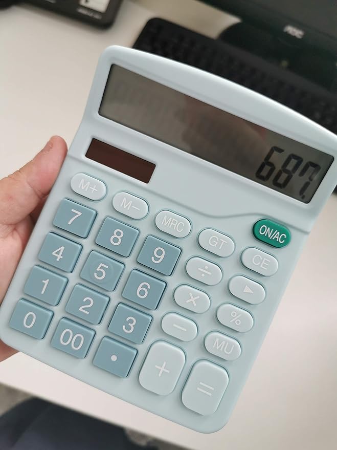 YOUHO Office Desk Calculator, 12-bit Solar Battery Dual Power Standard Function Electronic Calculator with Large LCD Display (1PACK,Blue)