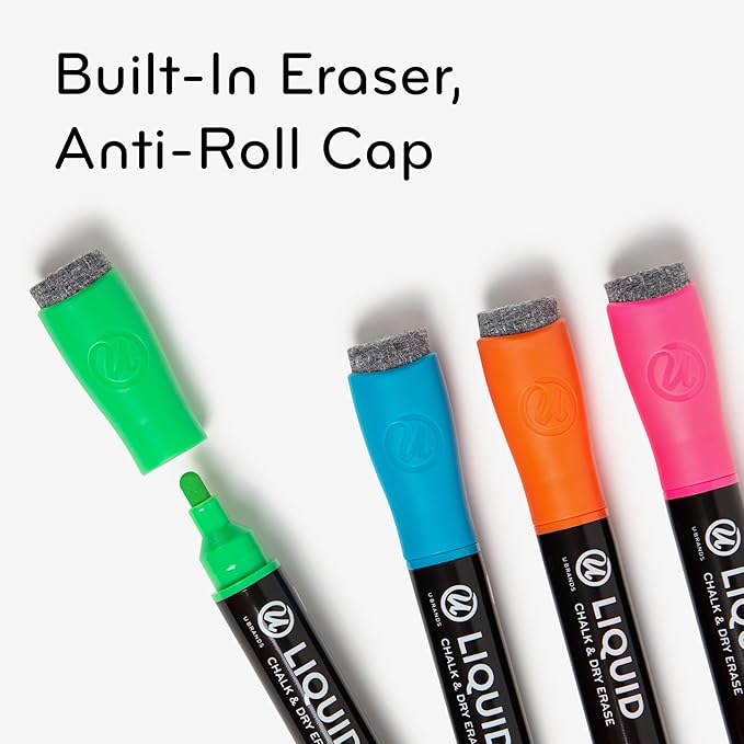 U Brands Liquid Chalk Markers For Blackboard, Chalk Board, and Dry Erase Boards, with Eraser, Assorted Bright Colors, Set of 4