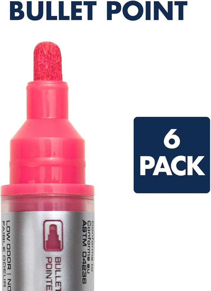- 6 pack includes 2 White markers and 1 each of neon Pink, Green, Blue and Yellow