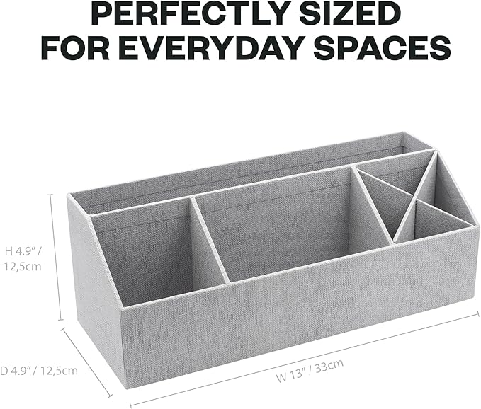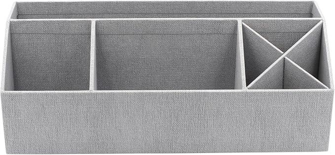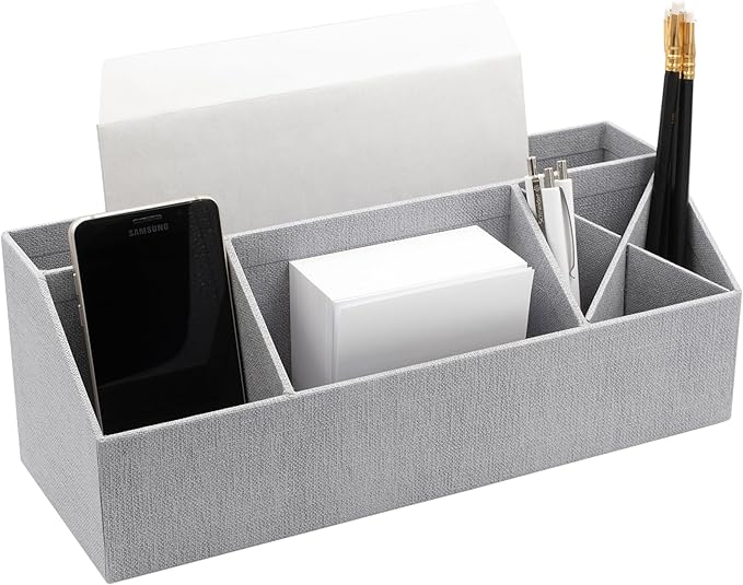 - Superior Material: This desktop organizer’s core is made out of solid, recycled fiberboard for increased sturdiness. It is covered in textured paper laminate that gives it a high-end look and feel which allows it to match most home and office decor.