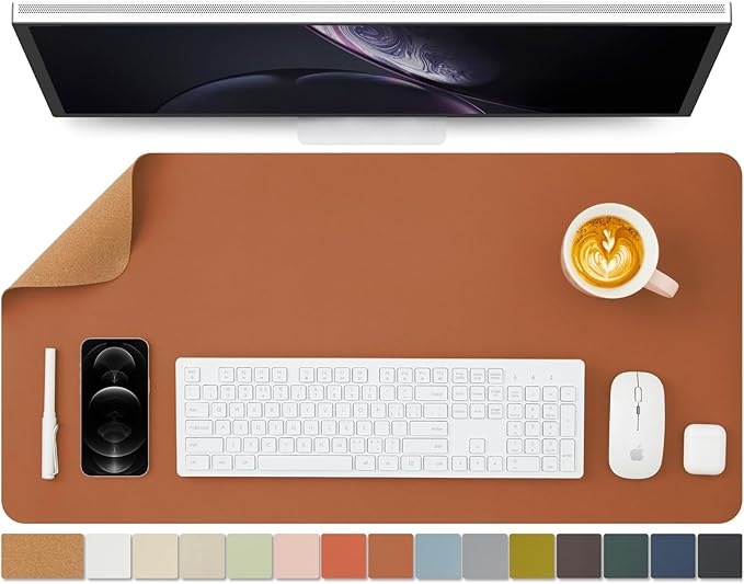 - Eco-friendly dual-sided design with Versatile Surface: Our desk mat combines a sustainable cork side and a premium PU leather side, offering both versatility and eco-conscious style for your workspace. The smooth surface supports seamless mouse operations and effortless writing tasks, promoting desk organization.