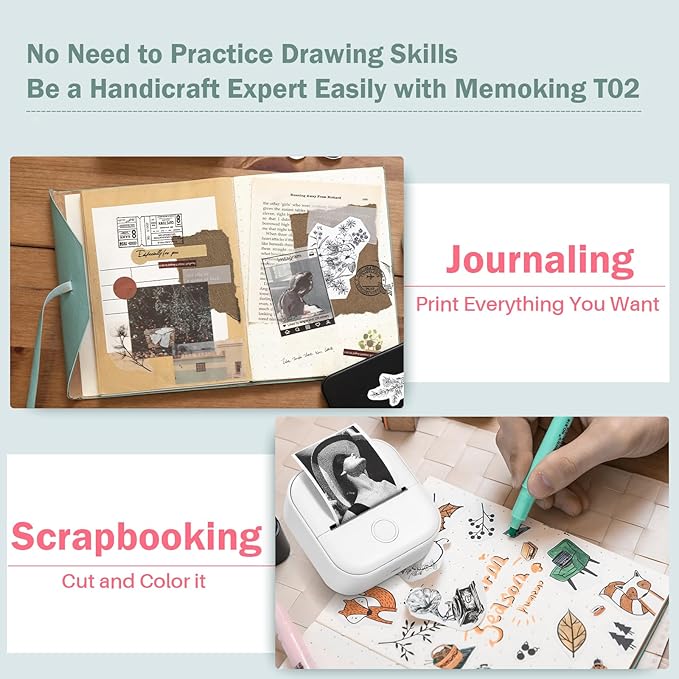 - Use Occasions: Memoking T02 203 dpi wireless small printer receipt printers are suitable for printing memos, records, plenty of APP themes, school for students, children, teachers, handwork teaching, work plans, shopping lists, "TO DO" lists and so on
