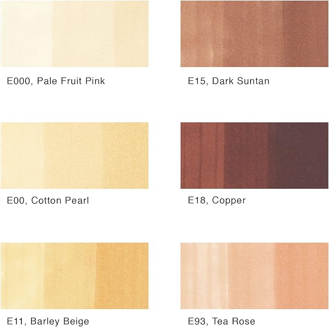 - This product is a new and improved version of our old model, Copic Sketch 6pc Skintone Set. This set includes a combination of the earth-tone colors E000, E00, E11, E15, E18, E93. This set is specifically curated for drawing portraits, but can also be used for landscapes.