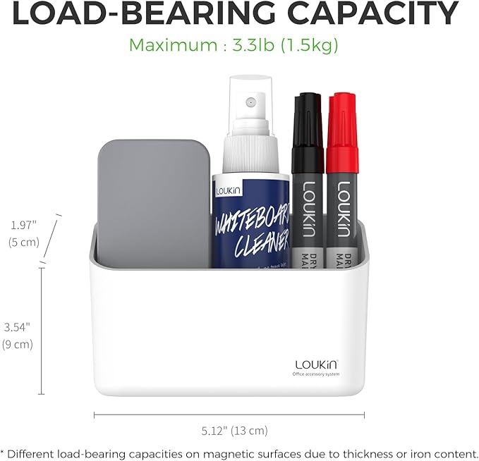 - Super Load Bearing: Secure magnetic storage organizer for whiteboards with a maximum load-bearing capacity of 3.3 lb (1.5kg)