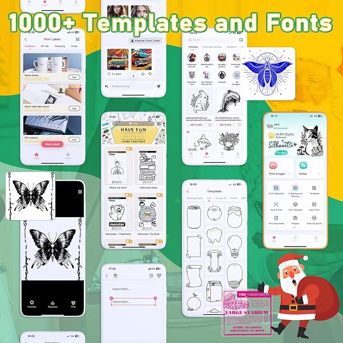 - Mini Mobile Printer with Powerful APP - One-touch printing saves time and effort, phomemo M02 sticker maker machine can print text patterns and photos instantly after connecting to the APP via Bluetooth, Phomemo APP provides thousands of patterns, fonts, filter effects and themes, which brings more fun to your creative printing
