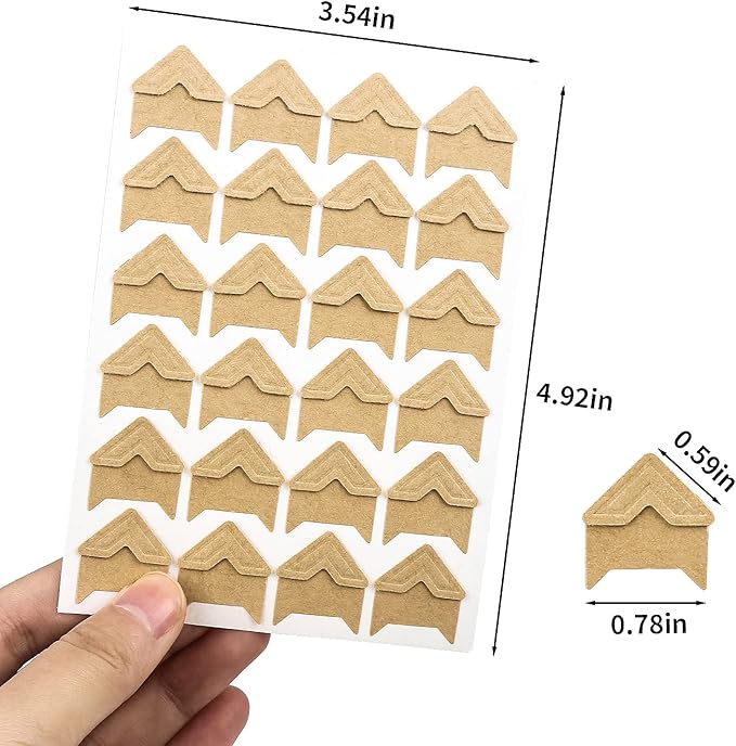 - Size: approximate15mm X 20mm / 0.59 X 0.78 inch. Totally 12 sheets/288 pcs picture corners.