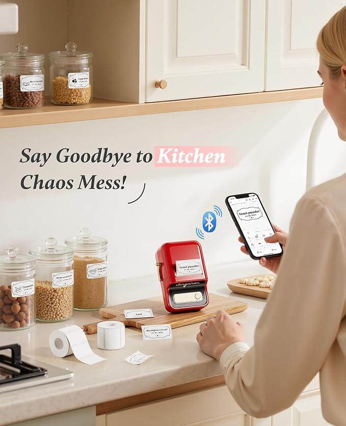 NIIMBOT B21 Label Printer,Bluetooth Thermal Label Maker,Ideal for Home Organization,Business,Ofice,50x30mm Labels,230Pcs(Red)