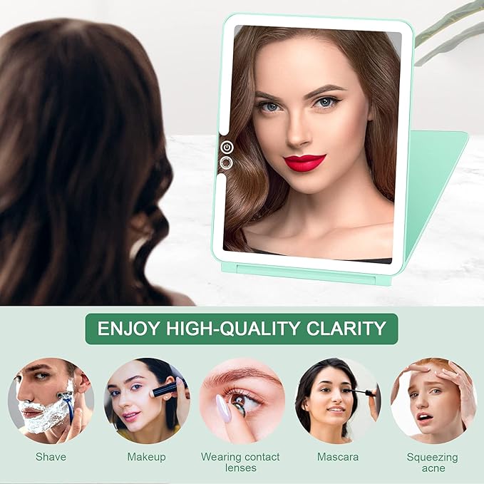 deweisn Folding Travel Mirror Lighted Makeup Mirror with 72 LEDs 3 Colors Light Modes, USB Rechargable, Portable, Ultra Thin, CompactVanity Mirror with Touch Screen Dimming for Cosmetic (Green)