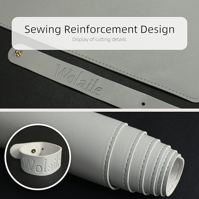- Anti-slip base:The edges of our desk pads are stitched.The bottom is suede for extra grip and keeps the pad from slipping.Comes with a small strap,it can be used to roll up the mat or organize messy wires.