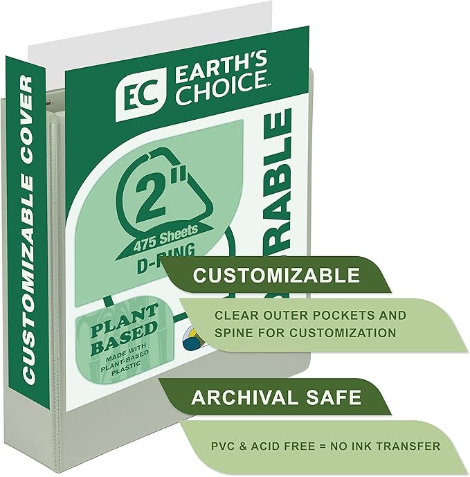 - Sustainable Solution: Our binder is made from plant-based materials, including a polypropylene cover derived from 25% Brazilian sugarcane and 100% recycled fiber boards. Brazilian sugarcane is chosen for its renewable nature and minimal impact on food crops, while actively capturing CO2 from the atmosphere