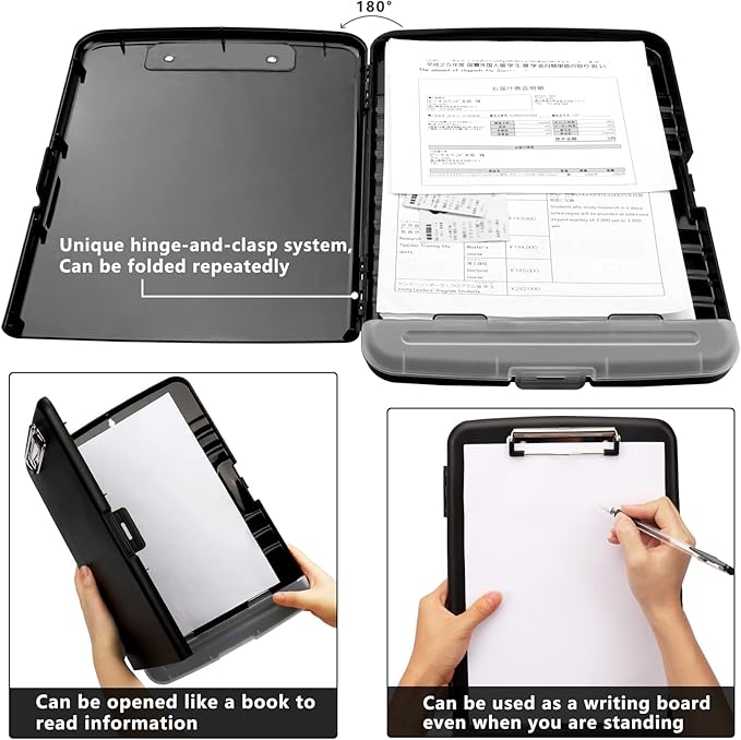 - Durable & Safety: The clipboard folder is made of sturdy & water-proof polypropylene which is stain resistant and easily be wiped down to assure clipboard is kept clean. The thick casing keeps your important documents from getting wet. Unique hinge-and-clasp system allow it stands up to daily use